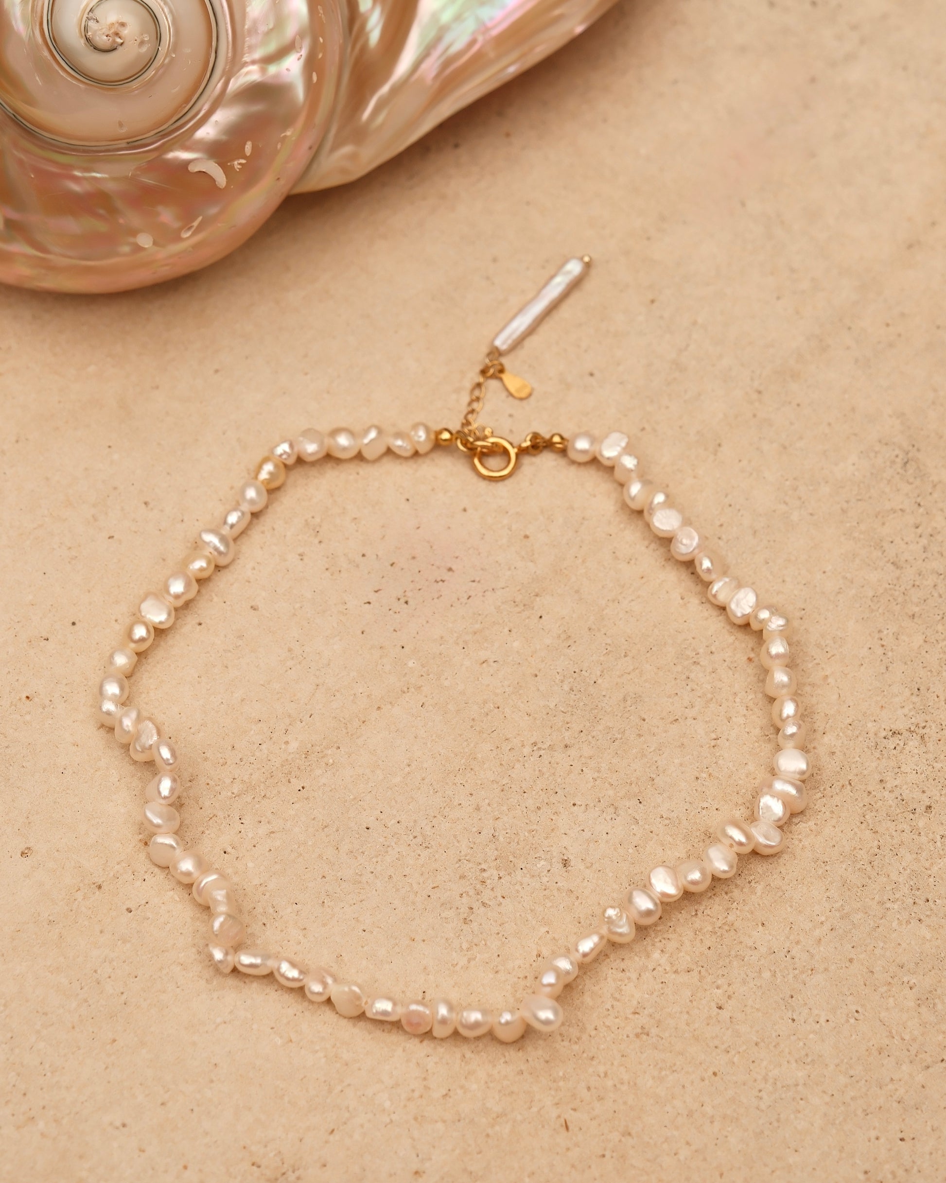 Each shell and pearl is shaped by the sea and touched by time — gently varied in color, form, and texture. These subtle differences are not imperfections, but quiet reminders that your piece is entirely one of a kind — just like you. Each pearl, shell, or stone is a natural treasure, expect gentle variations.